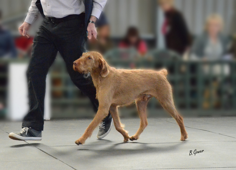 "Good sized young dog, true wire coat, as had all my exhibits. Moved well with confidence and some maturity. Would have preferred a little more balance but this may come in time."